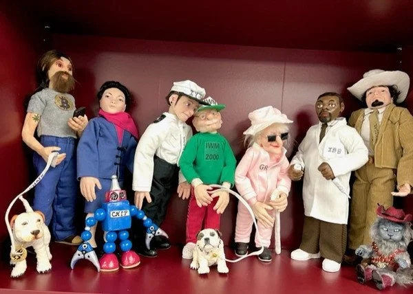 She started by creating animated characters that represent specific sectors of the economy which can be used as lead indicators of the macro economic picture and direction. These characters began as hand drawings ( as shown in these illustrations above ) and then she eventually turned them into dolls ( as seen in the photo above ), and Mish even went so far, as to impersonate some of the characters, including wigs and outfits on some of her on screen appearances.